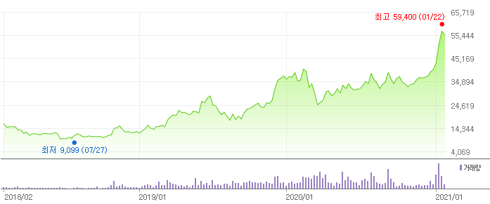 엠씨넥스의 주가 차트를 확인해보면 꾸준하게 우상향하고 있는 것을 확인할 수 있습니다. 2020년 바이든 당선 및 친환경 공약, 애플카 출시 등 자율주행에 긍정적인 영향이 있는 국가 정책, 개발 계획들이 발표되면서 기대감과 함께 가파른 주가 상승을 이끌었습니다.