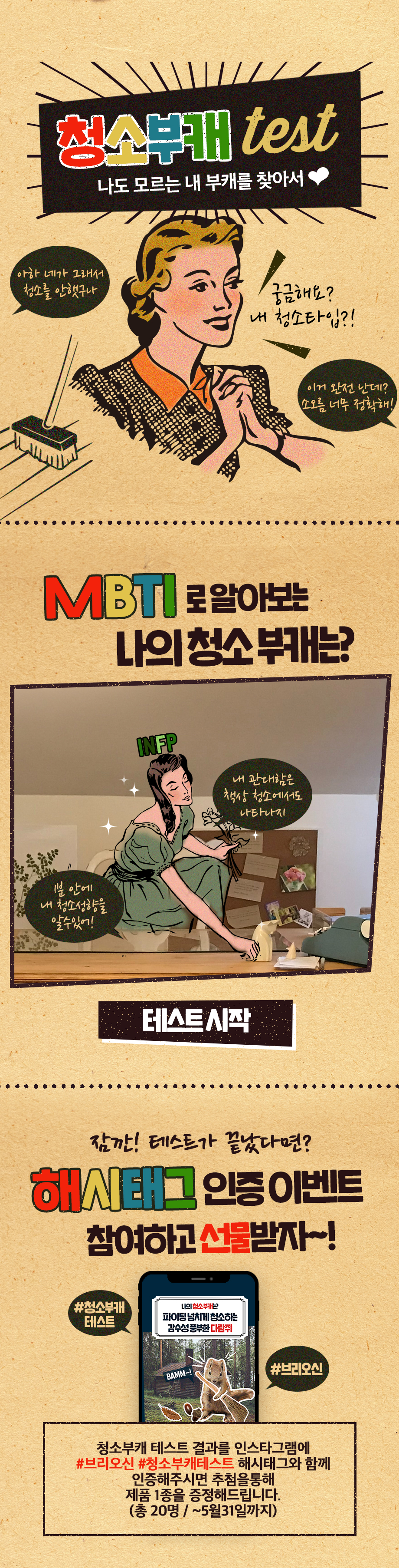 브랜드 대규모 세일과 함께 진행되기 위해 개발된 심리테스트로 다양한 이벤트가 함께하고 있으니 세제 등과 같은 아이템에 구매 계획이 있는 분이라면 심리테스트도 하고 할인(5월 31일 까지)도 받으면 좋을듯 합니다.